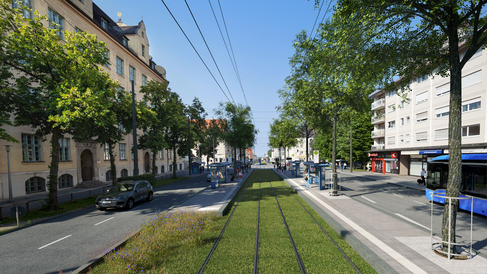 Die weiteren Bauabschnitte, die nun in Angriff genommen werden, führen zunächst von der Ammerseestraße vom Waldfriedhof und später weiter bis zur U-Bahnstation Aidenbachstraße. Die Inbetriebnahme dieser Abschnitte ist für 2028 geplant.