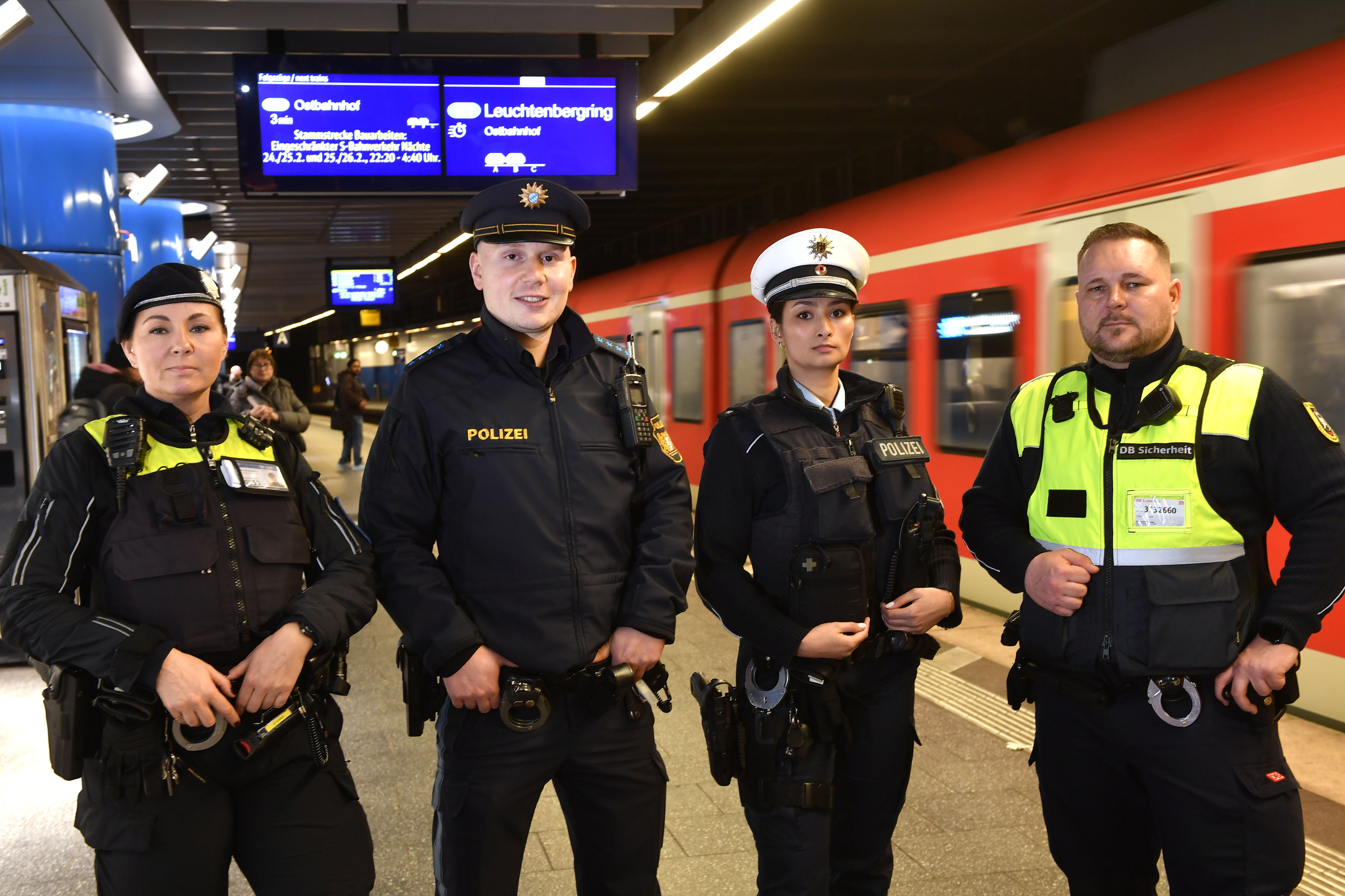 Neben Beamtinnen und Beamten der Münchner Polizei sowie der Landes- und Bundespolizei sind jeden Tag rund 200 Sicherheitskräfte von MVG und DB in Zügen und an Bahnhöfen im Großraum München präsent.