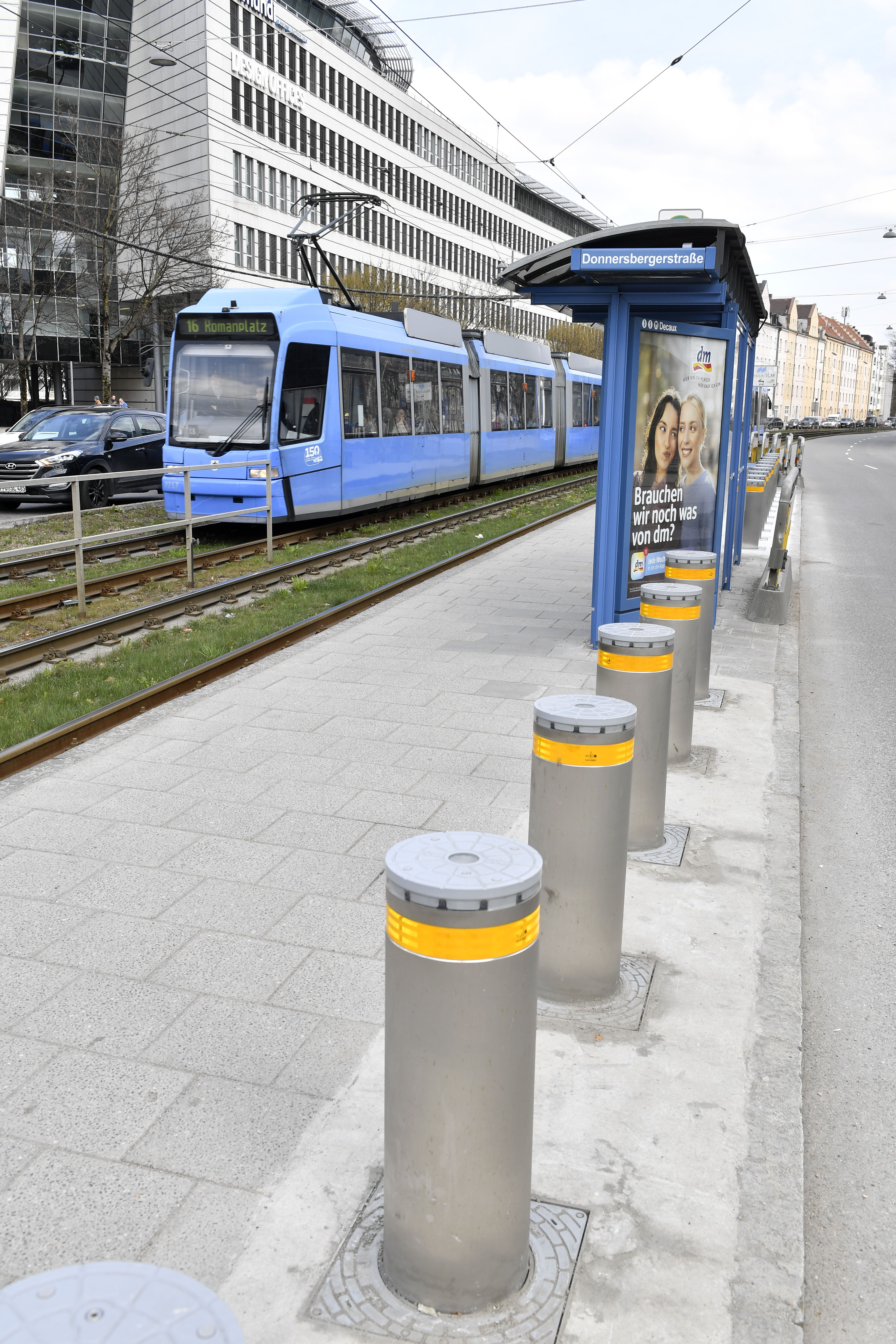 Nach Verkehrsunfällen: Haltestelle Donnersbergerstraße jetzt mit Pollern geschützt